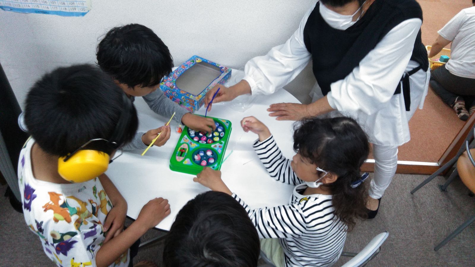 - 10:15までに到着後、手洗い、検温、手指消毒