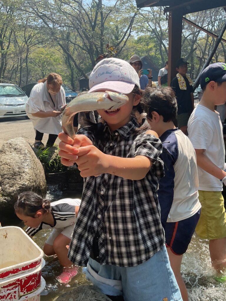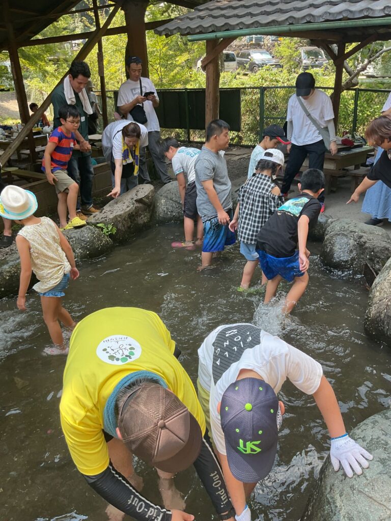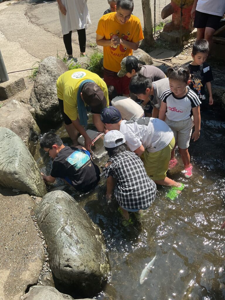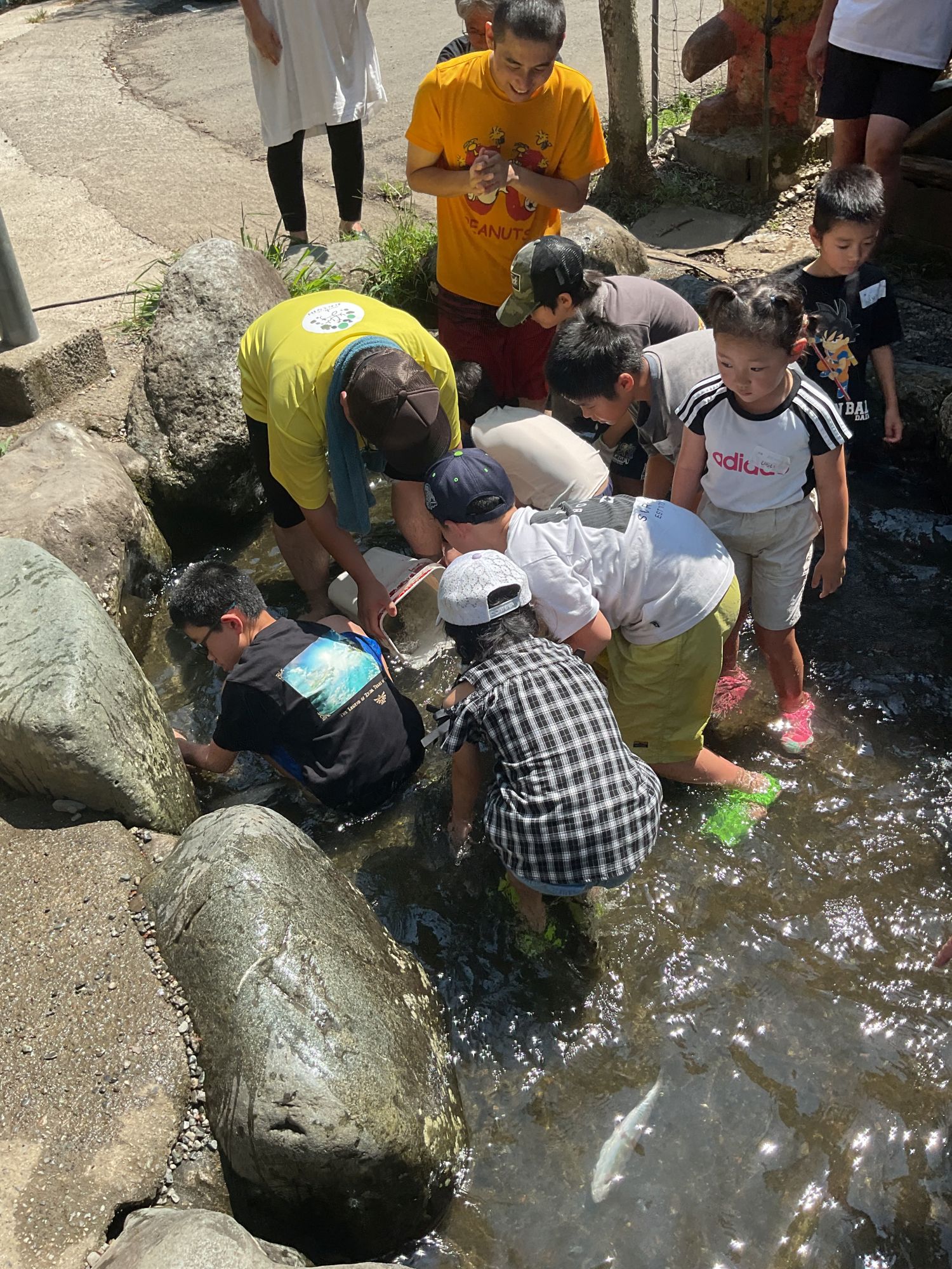 川の中をすいすいと泳ぎ、友達と一緒にたくましく育ってほしいという願いを込めました。